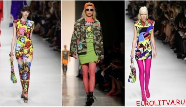 Пересечение моды и искусства – что может подарить еще больше креатива и индивидуальности? Огромное количество ярких красок и принтов, которые смогут оживить любой гардероб. Коллекции украшали принты в духе Уорхолла (Versace) и мультфильмов (Prada).