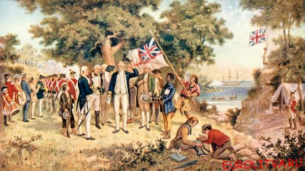 26 января 1788 года в бухте Сидней-коув было основано первое британское поселение, названное в честь министра внутренних дел Великобритании Томаса Таунсенда, первого виконта Сиднея. Новые земли объявили владениями британской короны. Свободные переселенцы стали прибывать в колонию только пять лет спустя.