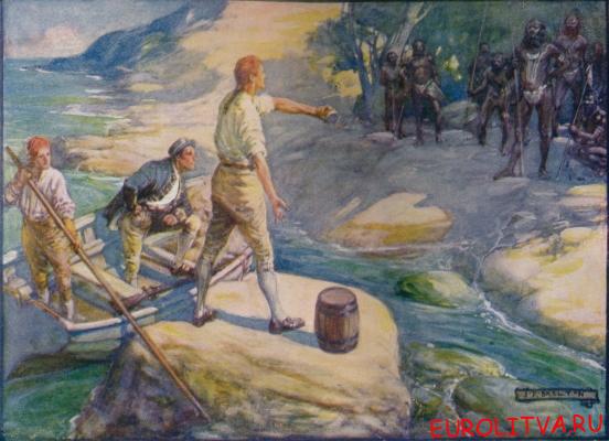 • Капитан Мэтью Флиндерс, английский мореплаватель и картограф, с австралийскими аборигенами