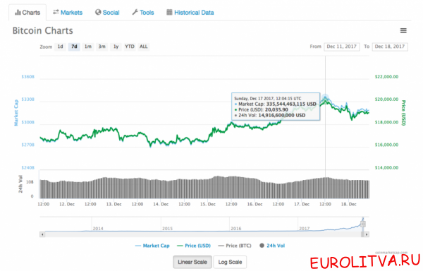 Биткоин преодолел очередной рубеж по стоимости. 17 декабря 2017 года он впервые в истории перешагнул через отметку в 20 тысяч долларов США, достигнув пиковой стоимости 20 089 доллара США, согласно данным сервиса CoinMarketCap.