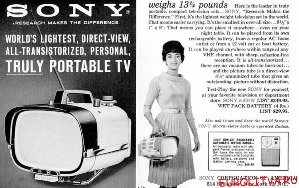 Восьмидюймовый телевизор весил 4 килограмма и в силу новизны конструкции хвалёной японской надёжностью ещё не отличался. Да и стоил он непомерных $249,95, что соответствует сегодняшним $2000. Даже самим японцам пришлось бы работать пять месяцев подряд для покупки такого телевизора.