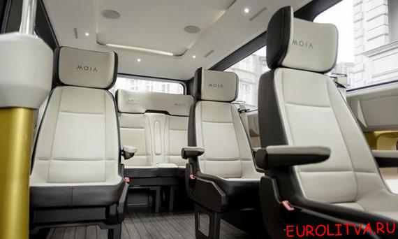 Микроавтобус Moia получил просторный салон с отдельными сиденьями и достаточным местом для ног, а также свободными проходами для легкого доступа к любому сиденью. Photo credit: VW.
