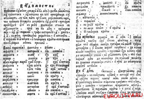 Первая русская газета: подборка текстов лично Петром I и первые тиражи